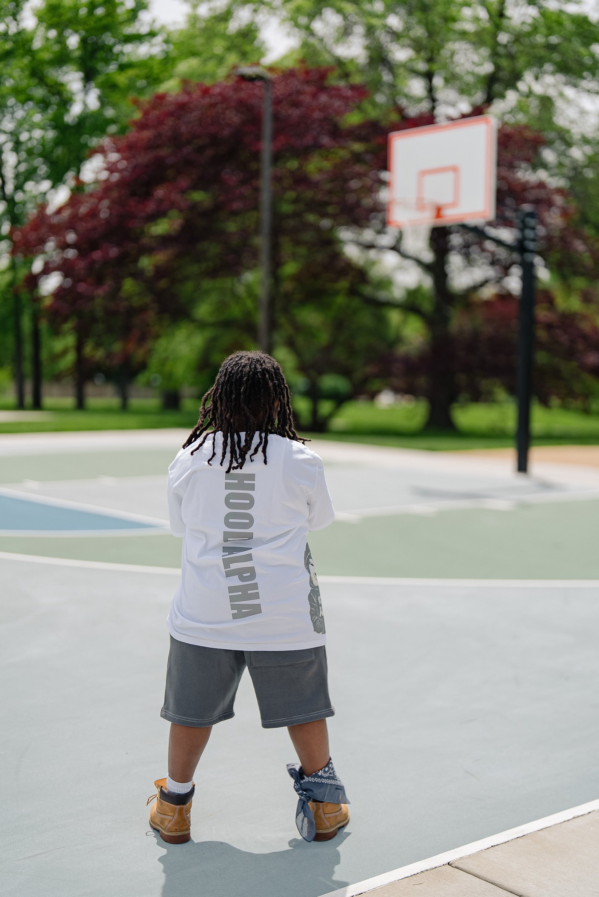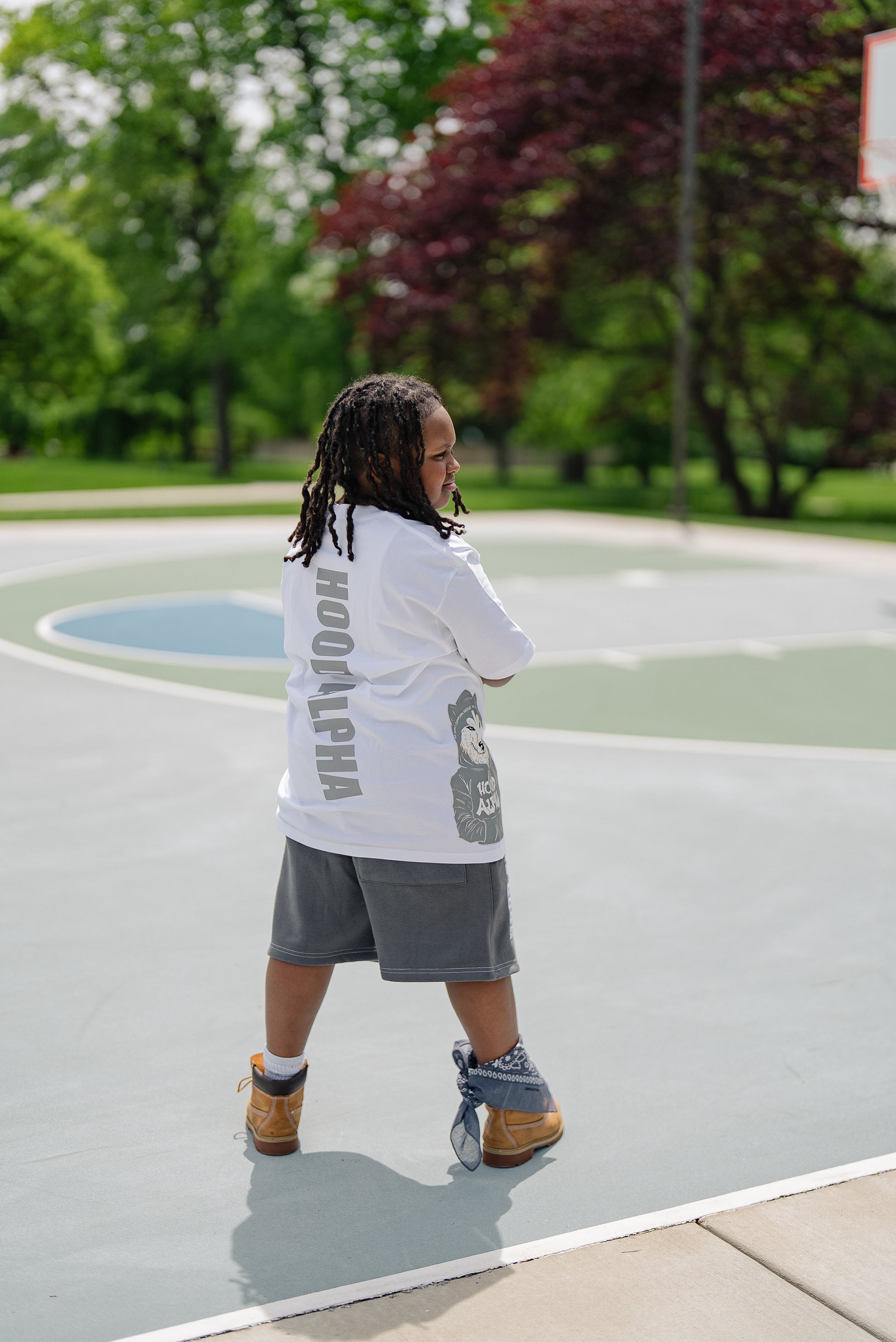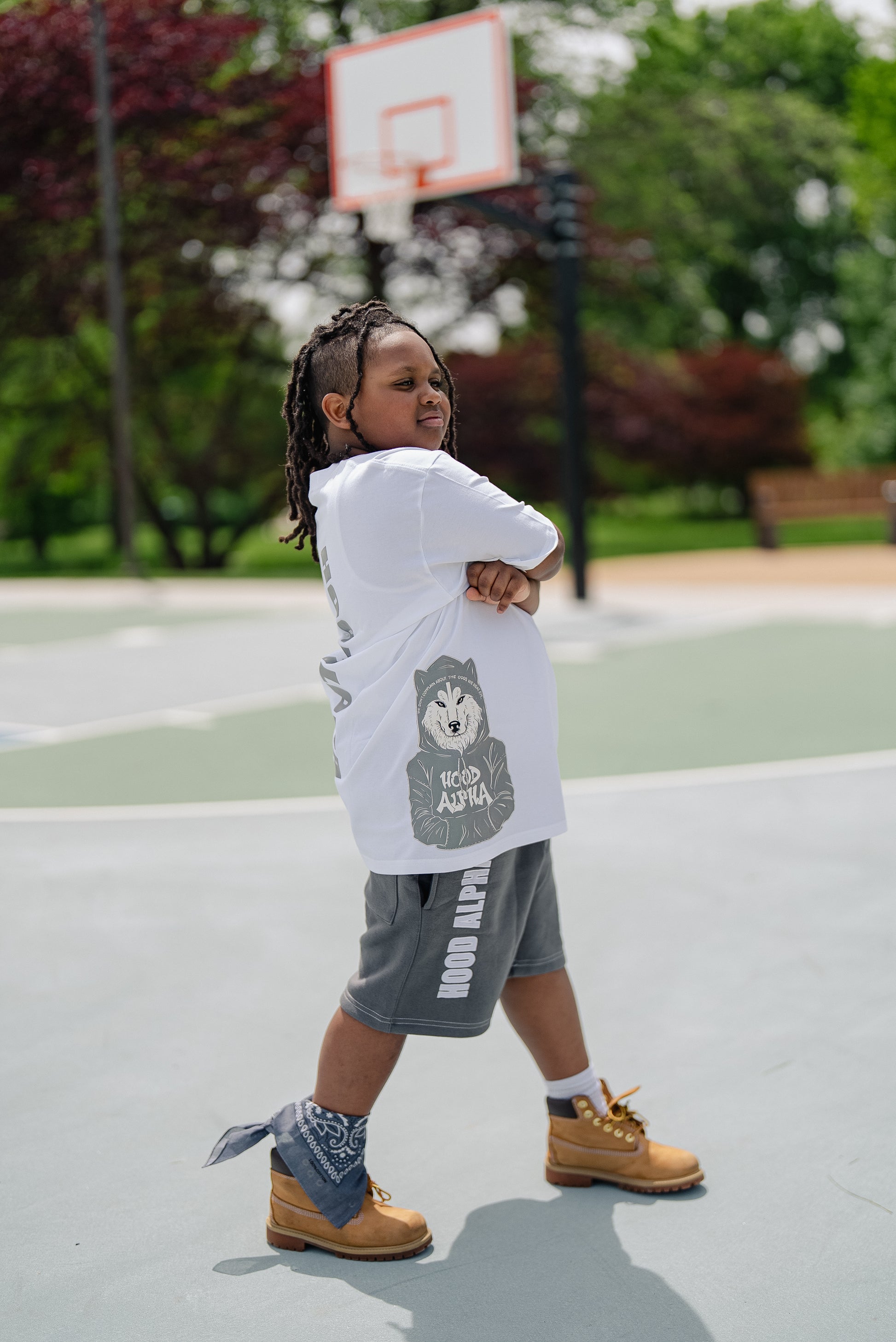 Gray & White – Gray shorts with white stitching / White shirt with gray wolf design